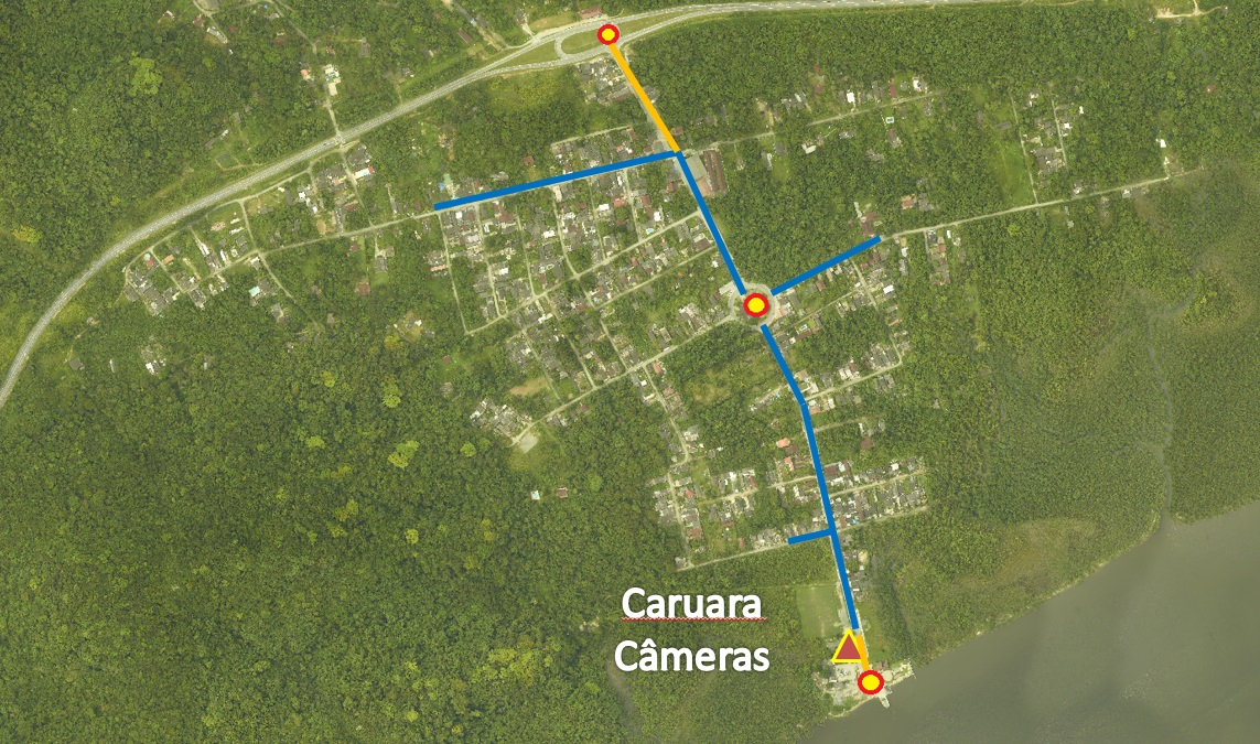Em Caruara, também estão previstas 12 câmeras de monitoramento em três pontos públicos: entrada do bairro, praça central e Portinho. As imagens serão transmitidas em tempo real ao CCO da Prefeitura, ampliando a segurança e o monitoramento urbano. Outras cinco câmeras serão instaladas nas torres e mastros para a segurança das estruturas.