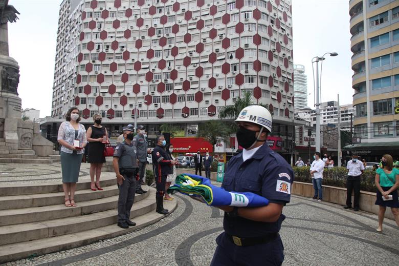 INDEPENDÊNCIA – A comemoração da Independência do Brasil em Santos ocorreu na manhã desta segunda-feira (7) na Praça das Bandeiras, com o hasteamento da bandeira do Brasil, pelo prefeito Paulo Alexandre Barbosa, e das estaduais pela Guarda Civil Municipal (GCM), ao som do Hino Nacional.