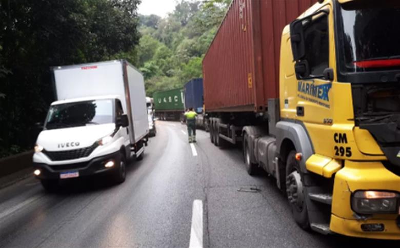 Engavetamento com quatro carretas gera lentidão na Rodovia Anchieta