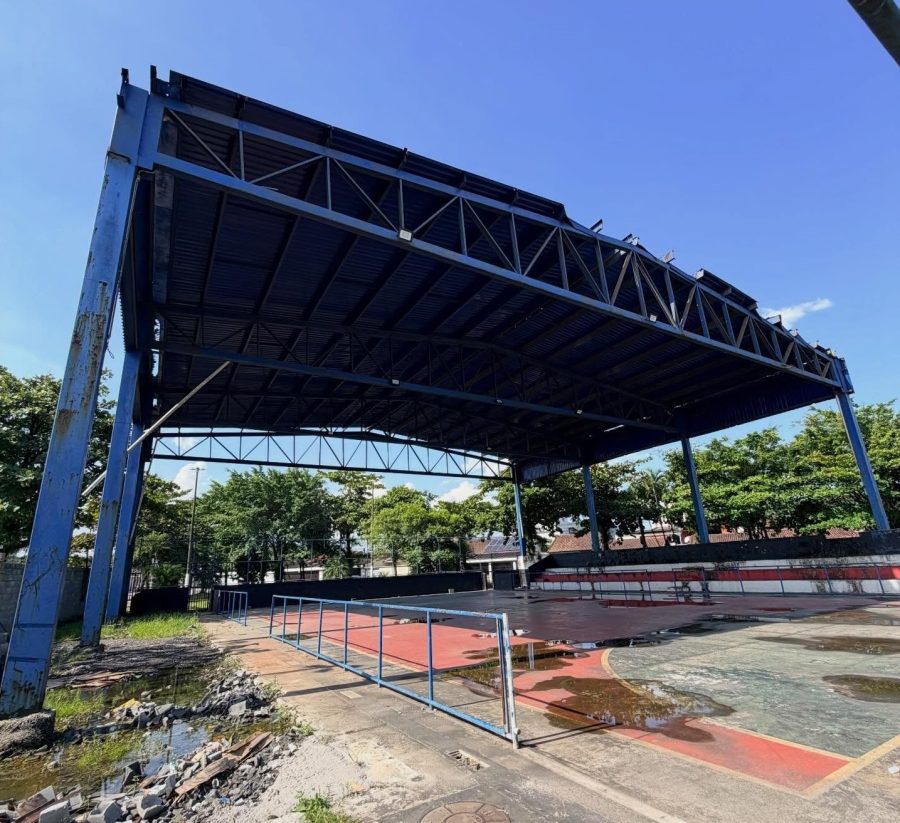 A precariedade vai além da estética. Alanys faz um apelo específico sobre a cobertura da quadra, onde telhas soltas representam um risco real de acidentes para os jovens que ainda tentam utilizar o espaço.