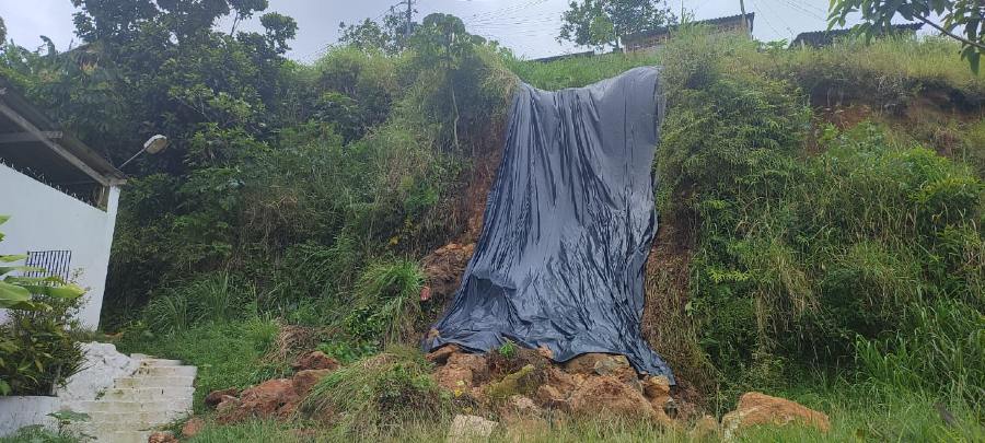 De acordo com o líder comunitário, Laércio Fiel, após o deslizamento, a Defesa Civil colocou um plástico na área afetada.