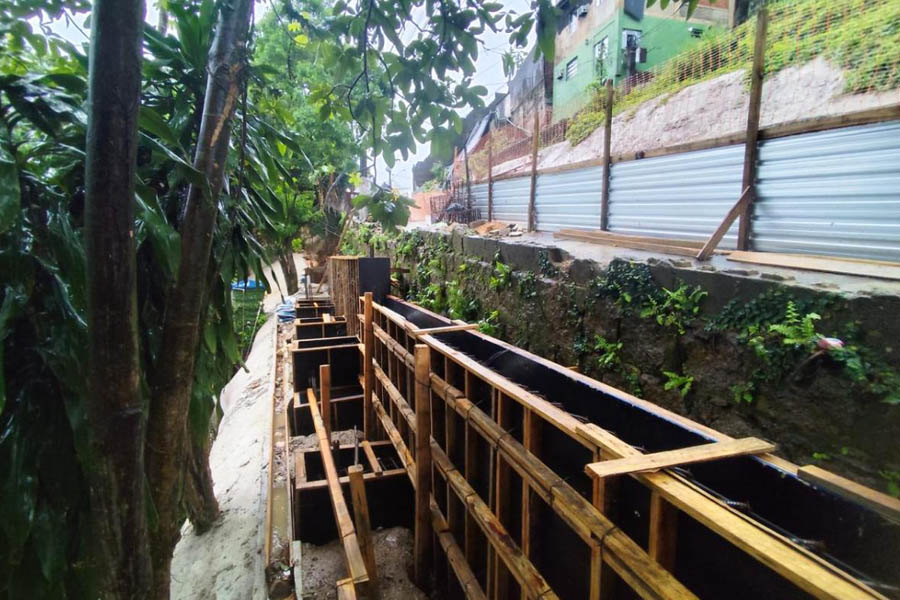 Atualmente, estão em fase final os preparativos para a concretagem do muro de arrimo que garantirá mais segurança para o trânsito de pedestres e veículos. Estes trabalhos estão marcados para a próxima semana, dependendo das condições do tempo.
