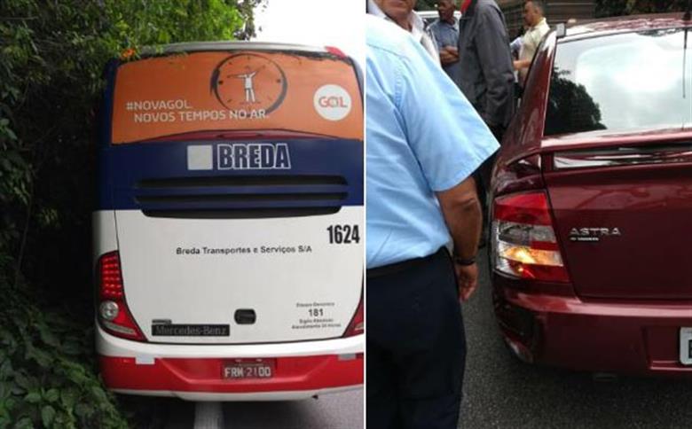 RODOVIA – Um ônibus da Viação Breda colidiu na traseira de um Astra vinho por volta das 10 horas desta sexta-feira (16) na Via Anchieta sentido litoral. O acidente ocorreu no KM 51, sentido litoral, trecho de serra em Cubatão. Ninguém ficou ferido.