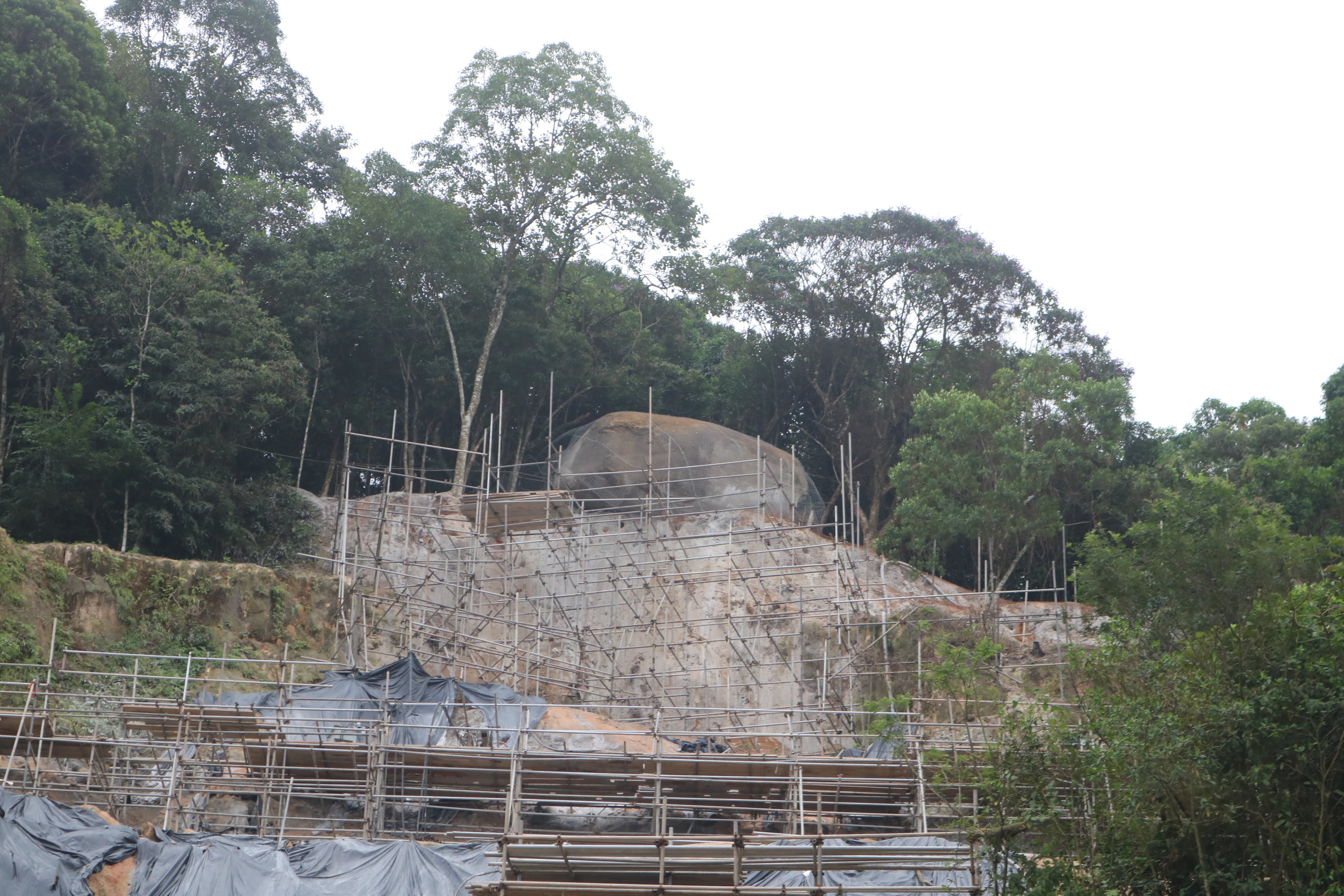 De acordo com o engenheiro Márcio Augusto Lima, da Seserp (Secretaria de Serviços Públicos), o painel de tela será agora preso aos 22 tirantes (hastes de ferro) já fincados na rocha em torno do bloco, afixados em um envoltório de concreto.