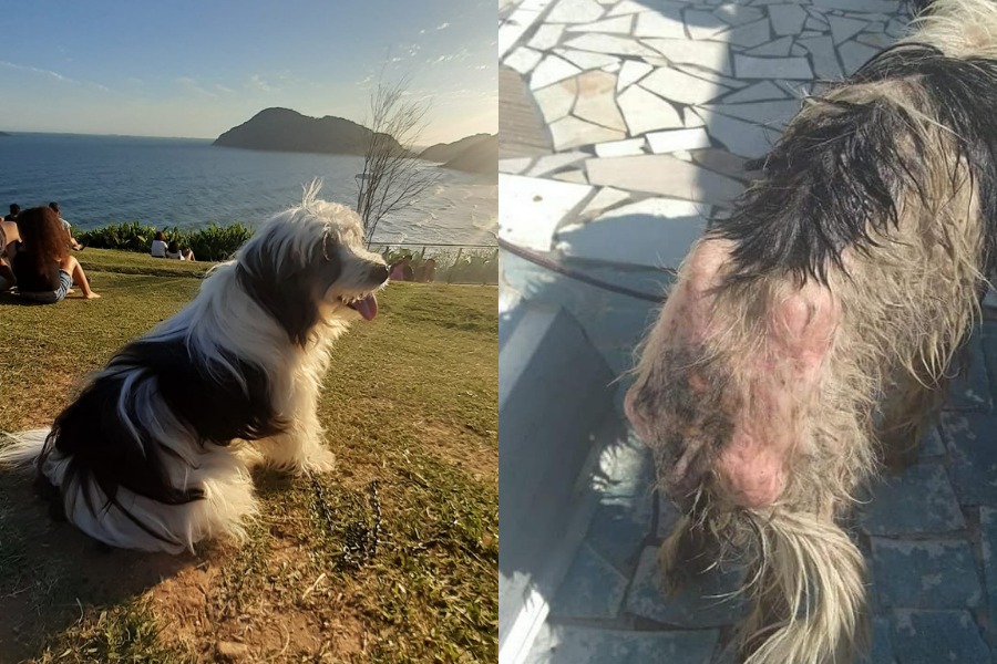 Protetor divulga imagens impressionantes de recuperação de cachorro abandonado