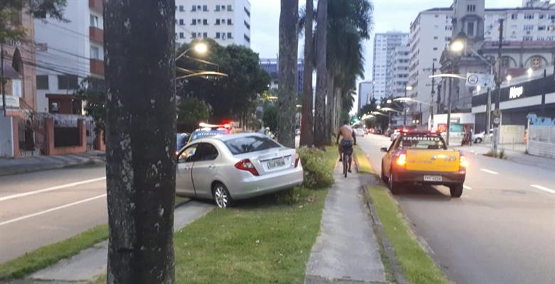 Motorista perde controle e fica atravessado sobre canteiro central, na Av. Ana Costa