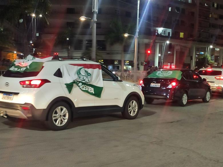 Palmeirenses da Baixada fazem festa dentro de carros e a pé, sem aglomeração