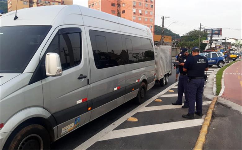 Duas vans de turismo irregular são barradas na entrada de Santos
