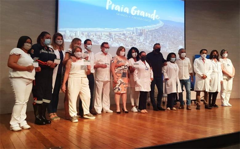 Profissionais de Saúde são as primeiras a serem vacinadas em São Vicente; vídeo