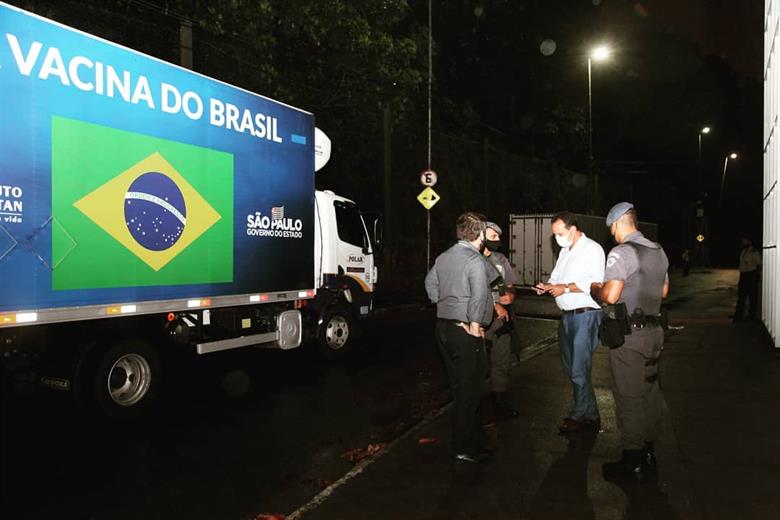 Caminhão do Butantan chega a Santos com lote de vacinas