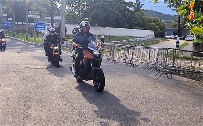 Bolsonaro deixa Forte dos Andradas para andar de moto pelas ruas de Guarujá; vídeo