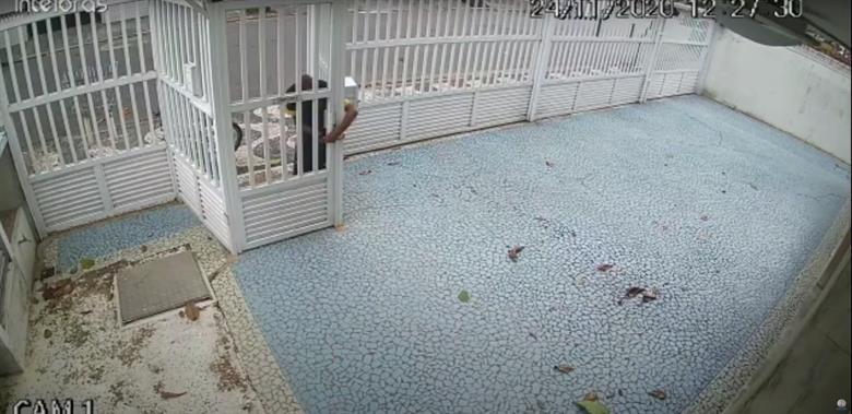 Ciclista passa por prédio do Embaré e resolve "trancar" o portão com o cadeado da bicicleta; Video