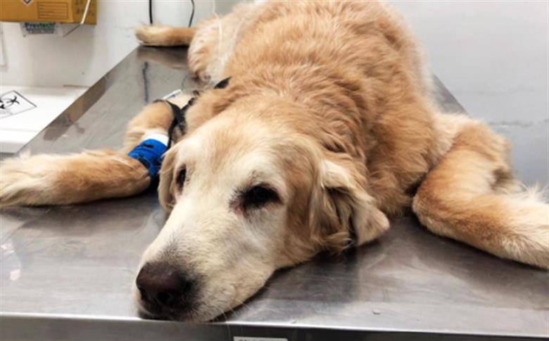 O Bahuan, da raça Golden Retriever, já passou por uma cirurgia e está precisando de tratamento para uma inflamação no intestino.