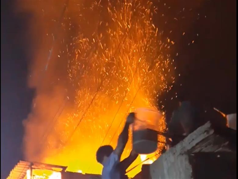 O fogo atinge um estabelecimento na Rua João Pessoa.