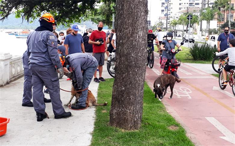 Cães presos debaixo de ponte são resgatados pelos bombeiros em Santos; vídeos