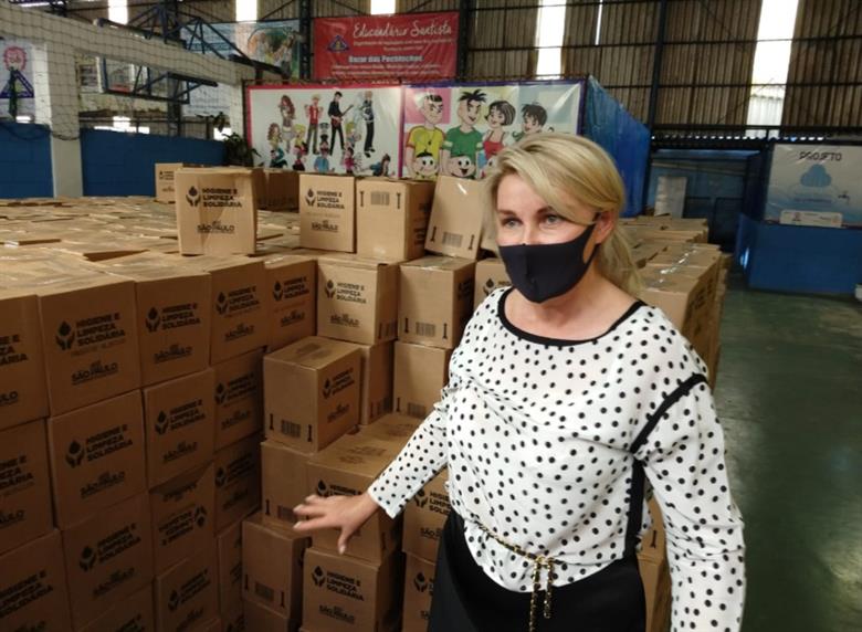 Bia Doria visita Educandário Santista e faz entregas de kits de higiene e cestas básicas