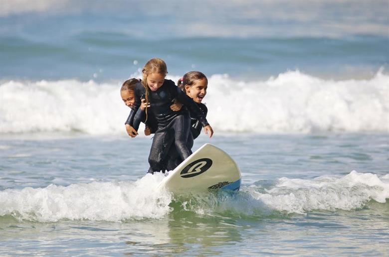 As meninas têm apenas 8 anos e começaram a praticar o esporte por incentivo do pai, que também é surfista