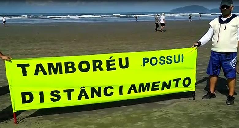 Praticantes de tamboréu fazem protesto pela volta do esporte em Santos