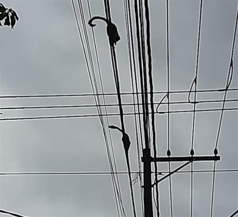 Saguis são vistos caminhando em fios de energia elétrica no Gonzaga