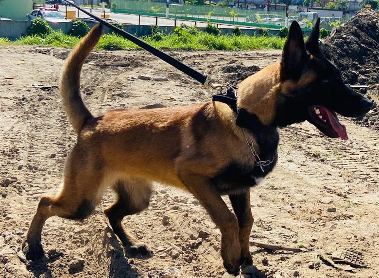 Pastor de Malinois tem cinco meses e já começou os treinamentos para trabalhar na corporação