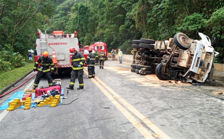Motorista morre após ficar preso nas ferragens de caminhão em acidente na Mogi-Bertioga