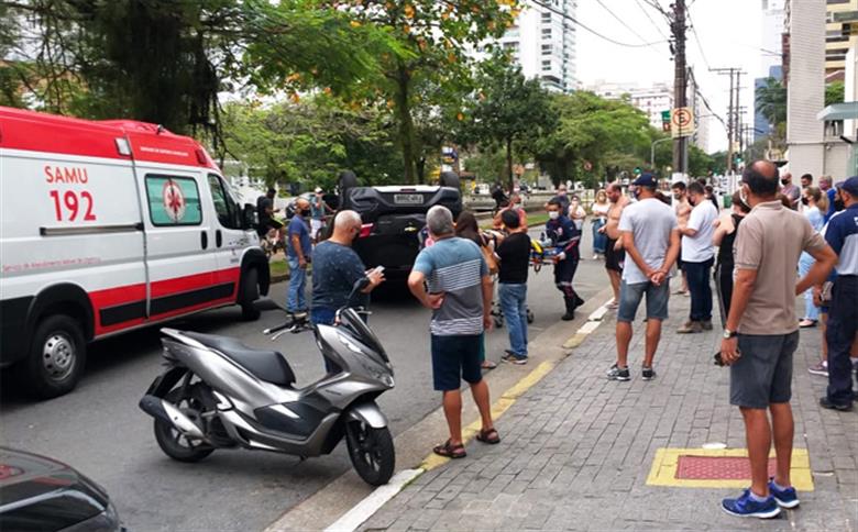 Idoso passa mal e carro capota em avenida do canal 5 em Santos