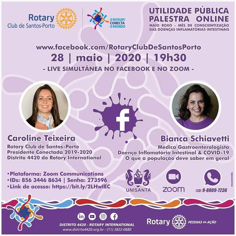 Rotary Club de Santos-Porto promove palestra sobre doenças inflamatórias intestinais e Covid-19
