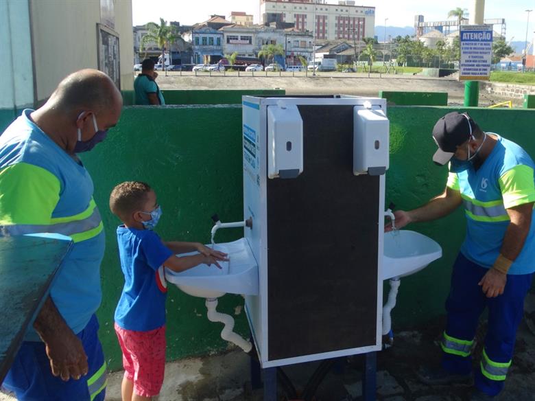 Por combate ao novo coronavírus, Sabesp instala lavatórios em Santos
