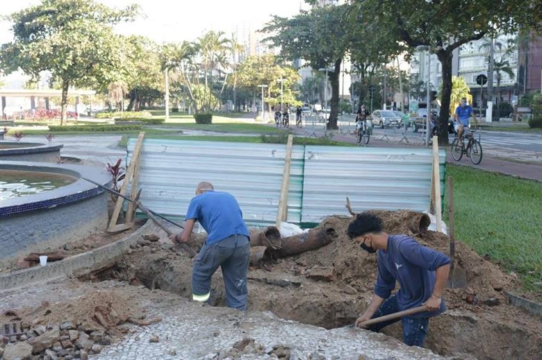 Santos: área em torno de fonte no Boqueirão entra em obras de drenagem