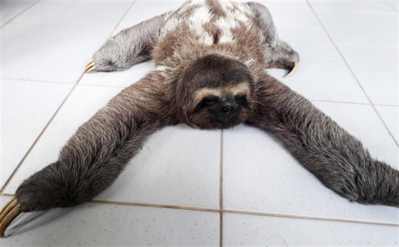 Bicho-preguiça é resgatado por guardas ambientais em São Vicente