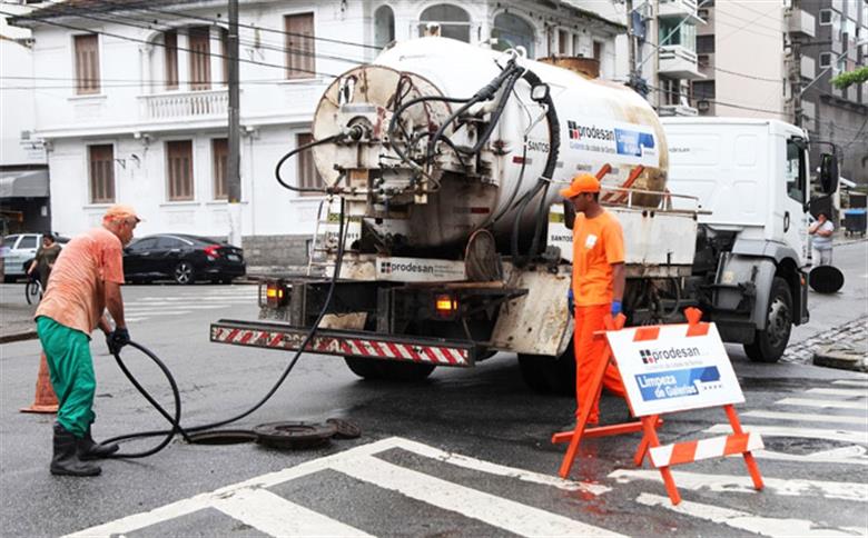 Serviço de limpeza retira 13 toneladas de detritos do sistema de drenagem em Santos
