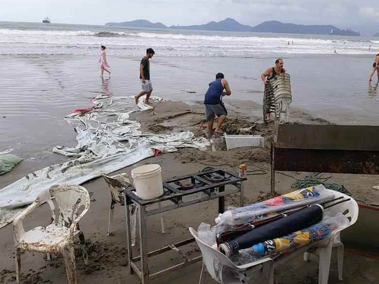 Depois do ciclone, trabalhos de limpeza na praia de Santos seguem sendo feitos