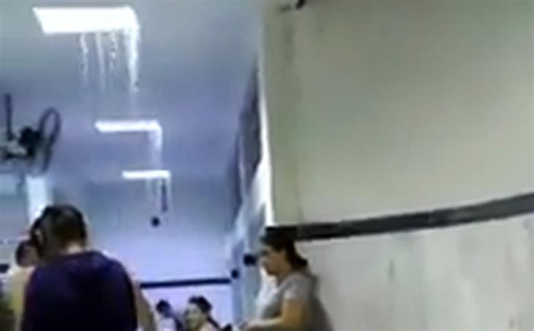 Água cai do telhado na sala de espera para pacientes do Irmã Dulce; vídeo