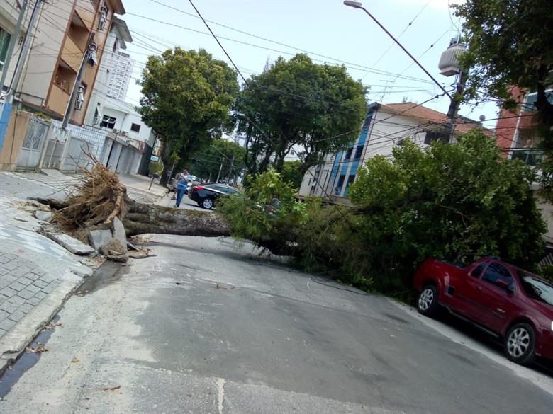 Queda de árvore interdita a rua Frei Francisco Sampaio, no Embaré