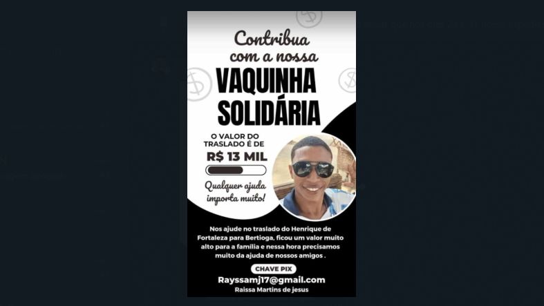 Sem condições de pagar o traslado, a família iniciou uma campanha nas redes sociais na última sexta-feira (20). Os valores foram doados via Pix para a prima da vítima e em menos de um dia, a família já havia arrecadado o suficiente para trazer o corpo de Henrique.