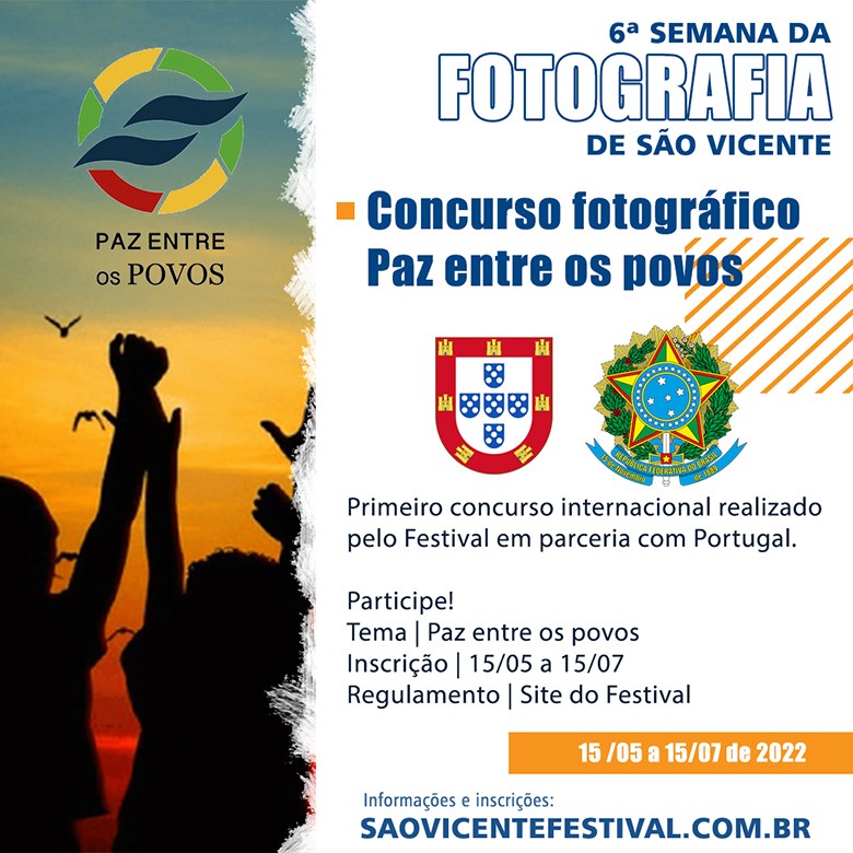 O São Vicente Festival, está com as inscrições abertas para o concurso internacional de fotografia com tema “Paz entre os povos”.