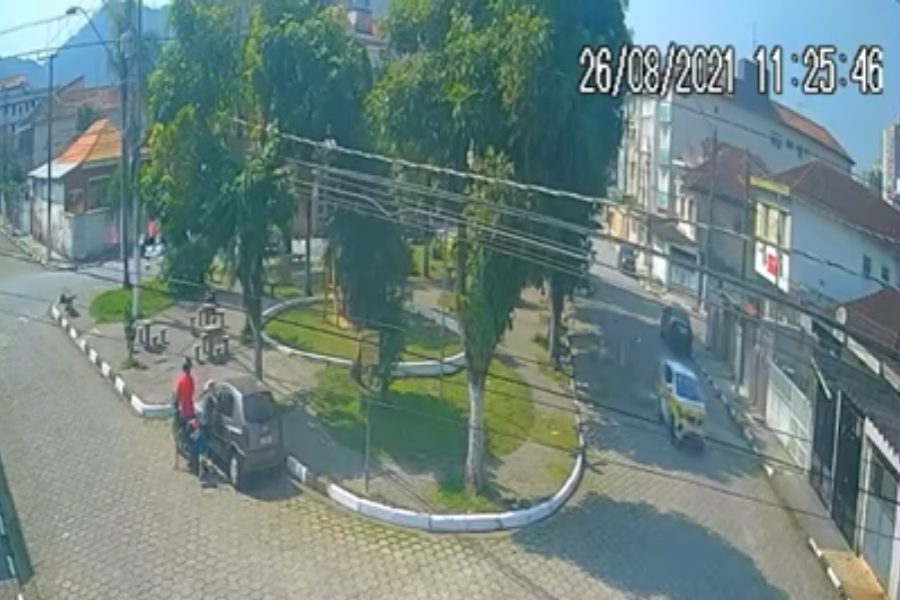 Dois criminosos em uma moto assaltaram um motorista que estava com o carro estacionado, na Praça Vicente de Carvalho, no bairro Vila Valença, em São Vice...