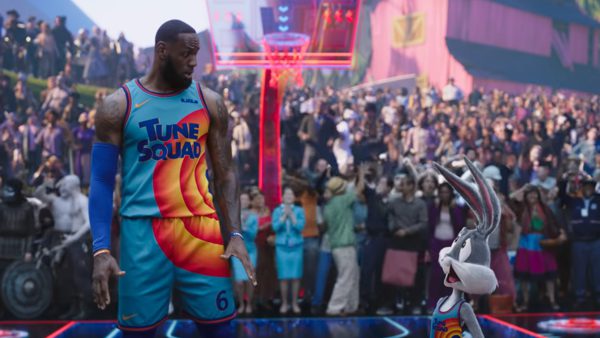 No local ambos são separados por este que desafia James para uma partida de basquete valendo a sua liberdade. Para isso ele acaba sendo transportado para o mundo dos Looney Tunes e se junta a Pernalonga para tentar montar o time perfeito.