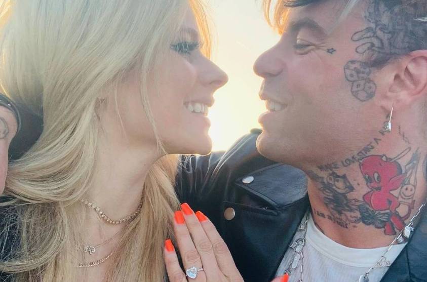 A cantora Avril Lavigne, 37, revelou em suas redes sociais que está noiva de seu atual namorado, o músico Mod Sun, 35.