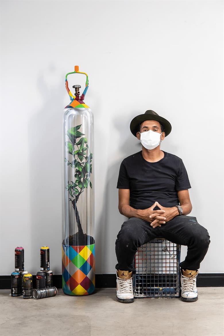 Autor de painel na Ponta da Praia, Eduardo Kobra transforma cilindro em arte