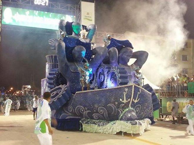 Nas cores azul, verde e branco, a agremiação apresentou 12 alas e quatro carros alegóricos na passarela do samba Dráusio da Cruz.