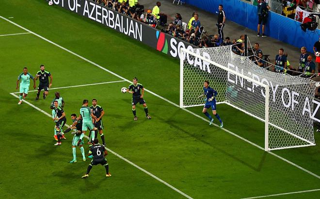 Com a vantagem, a seleção portuguesa controlou o jogo e passou a explorar o desespero de País de Gales. Aos 17, Cristiano Ronaldo cobrou falta com muito perigo, mas a bola passou raspando por cima do gol rival.