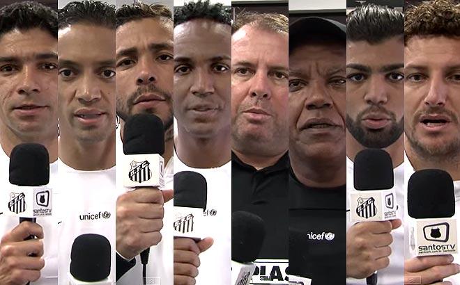 O primeiro na gravação foi o volante Renato, que fez parte da geração de Meninos da Vila campeões do Campeonato Brasileiro 2002. “Uma perda muito grande, não só para o Santos FC-SP como também para o mundo inteiro”, disse o jogador, que vestiu a camisa 8, outro número além do tradicional 5 utilizado pelo ídolo ao longo de sua carreira pelo Peixe.
