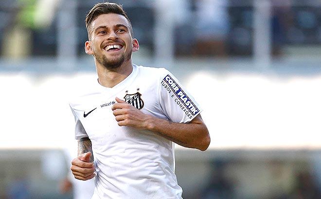 Lucas Lima festeja primeiro gol pelo Santos na temporada 2015