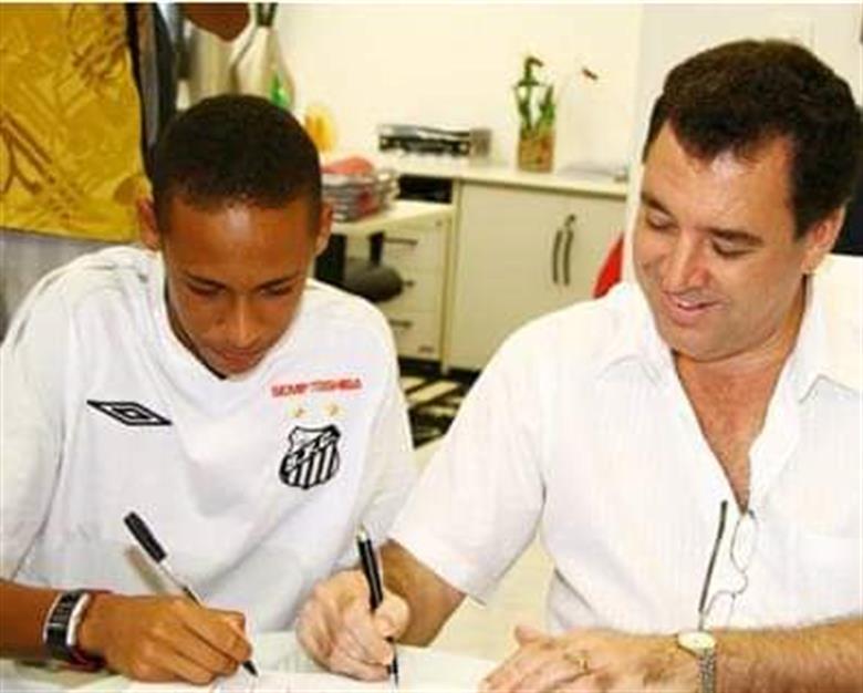 Foi com Marcelo Teixeira que Neymar assinou o primeiro contrato profissional. Neymar ficou no Santos até 2013. 11 anos, ao todo. Fez 230 jogos com a camisa do Peixe, marcou 138 gols, venceu 3 campeonatos paulistas, uma Copa do Brasil, uma Libertadores e uma Recopa Sul-Americana.