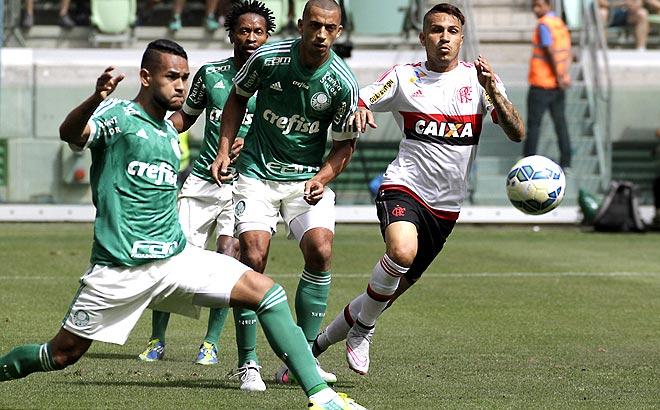 O Flamengo-RJ buscava reagir e tinha posse de bola, mas com dificuldades para encaixar a troca de passes. O Palmeiras-SP jogava explorando os espaços na defesa do time visitante para tentar o ataque.