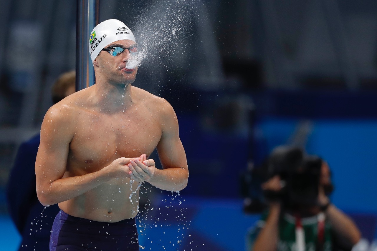 O nadador Leonardo de Deus, da Unisanta, em sua terceira participação olímpica, nadou para 1m54s97, segundo melhor tempo das semifinais e brigará por me...
