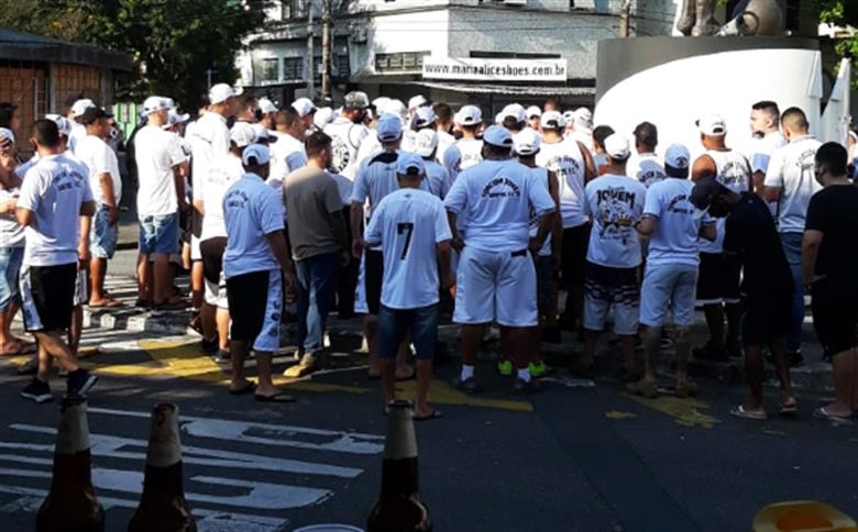 Cerca de 100 torcedores entoaram palavras de ordem contra Peres, pedindo mais respeito dele com a história do Peixe.