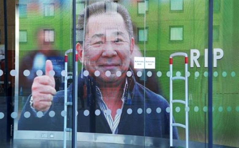 Após o suposto helicóptero com o tailandês dono do Leicester (Inglaterra), a torcida prestou homenagens no Estádio King Power.