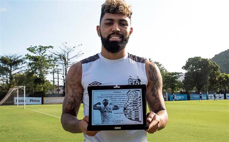 Gabigol recebe placa pelo gol 12.500 do Santos e espera ficar: "Não depende só de mim"